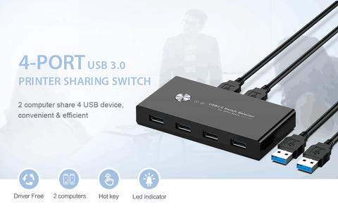 - Rybozen 4-Port USB 3.0 Switch is an excellent choice to share 4 USB 3.0 or USB 2.0 devices between two Computers, saving time and space!