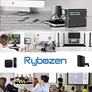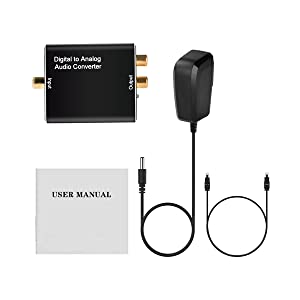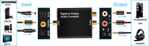 • 【Digital to Analog Audio Converter】 Converts coaxial or toslink digital PCM audio signals to analog L/R RCA and 3.5mm Jack audio simultaneously ( not capable of being reversed).Can be Used for PS3, PS4, Xbox, Blu-ray Player, HD DVD, Home Cinema Systems, AV Amps, Etc